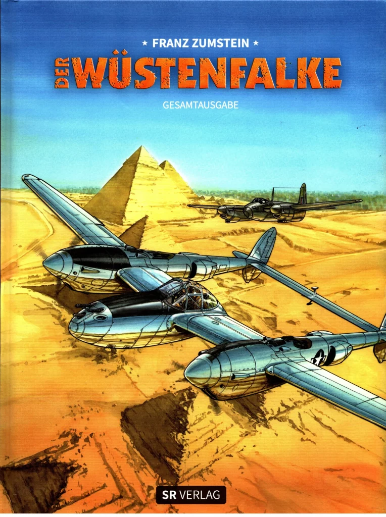 DER WÜSTENFALKE GESAMTAUSGABE (29,90 Euro) spielt im Jahr 1942, als sich über Libyen deutsche, italienische und englische Flieger erbitterte Kämpfe liefern. Der kleine Ali träumt davon, selbst mal Pilot zu werden – und dann ergibt sich die Gelegenheit. Der Comic hebt sich von üblichen Flieger-Kriegscomics ab, weil er die Flugzeuge nicht in den Mittelpunkt rückt. Das mag Fans dieser Art von Geschichten aber sauer aufstoßen. Gut lesbar ist sie trotzdem, auch wenn die Zeichnungen etwas hölzern sind.
