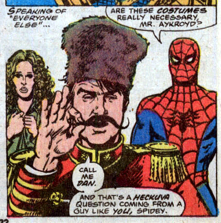 Im Lauf der Jahre ist Spider-Man auf allerhand Prominenter gestoßen. So traf Spider-Man auf Dan Aykroyd, und zwar zu Zeiten von „Saturday Night Live“.