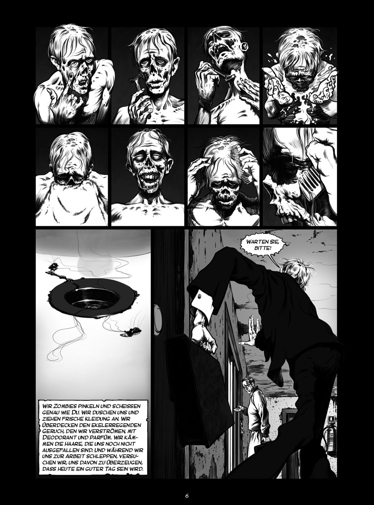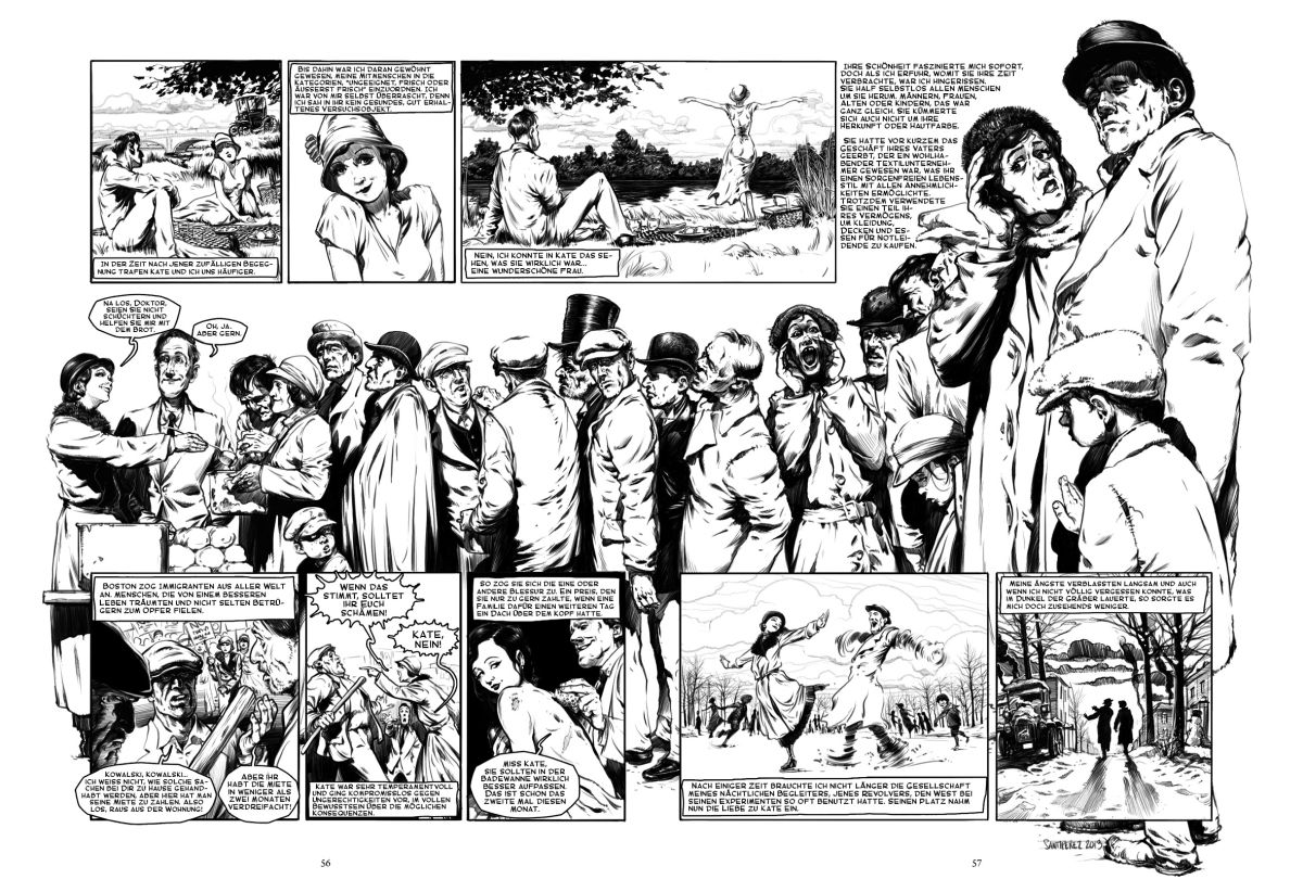 VARIOUS HORROR VISIONS ist ein neuer Comic des spanischen Verlegers Diabolo, der auf 64 Seiten sechs sehr unterschiedliche Geschichten beinhaltet. Allen gemein ist, dass sie dem Reich des Horrors angehören und der Künstler Santipérez sie umgesetzt hat. Er zeigt dabei eine außerordentliche Bandbreite, was seinen Stil betrifft. Dominant ist der schwarzweiße Strich, aber es gibt auch zwei Geschichten in Farbe. Allen seinen Arbeiten ist gemein, dass sie extrem detailreich sind, das Spiel mit Licht und Schatten perfekt beherrschen, aber nie zu real erscheinen. Santipérez hat einen Zeichenstil, den man vielleicht am Ehesten mit dem von Bernie Wrightson vergleichen kann. Realistisch, aber nicht so realistisch, dass die Comic-Wurzeln hinter sich gelassen würden.