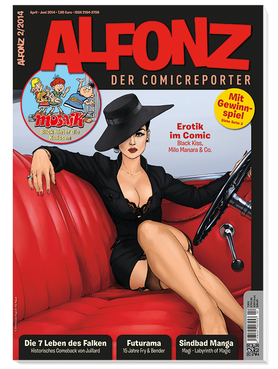 Die neue Ausgabe von ALFONZ (EVT: 2. April 2014) steht an. Es gibt einen kleinen Streifzug durch die Welt der Erotikcomics, wobei nicht nur die kontroverse US-Serie Black Kiss mit ihrer Mischung aus Erotik und Hardboiled-Krimi von Howard Chaykin vorgesellt wird, die im Frühsommer eine Neuedition erlebt, sondern auch die wangenerrötenden Geschichten von Milo Manara & Co. etwas genauer unter die Lupe genommen werden.