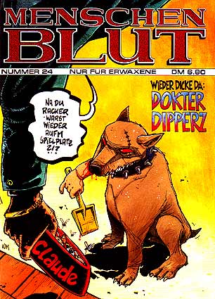 Die Blutkru arbeitete fleißig an ihren Heften, erfand den Metzger Fröhlich, der gerne verhackstückt, was gerade da ist, und die Kult-Figur Dr. Dipperz, dessen Leben in zahlreichen Geschichten nachgezeichnet wurde. Dass es angesichts der Skrupellosigkeit des guten Doktors und seiner stets vorhandenen Experimentierfreude gar manchmal krass vonstatten ging, ist ja klar.