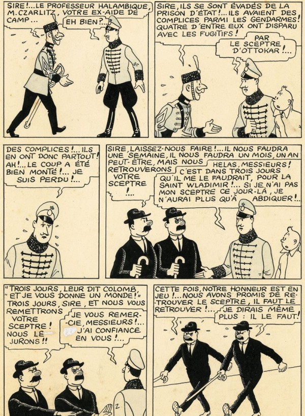 Kaum zu glauben, aber eine Originalseite von „Tim und Struppi“, und zwar aus dem Album „König Ottokars Zepter“, wurde gefunden. Und zwar hinter einem Sofa!!!