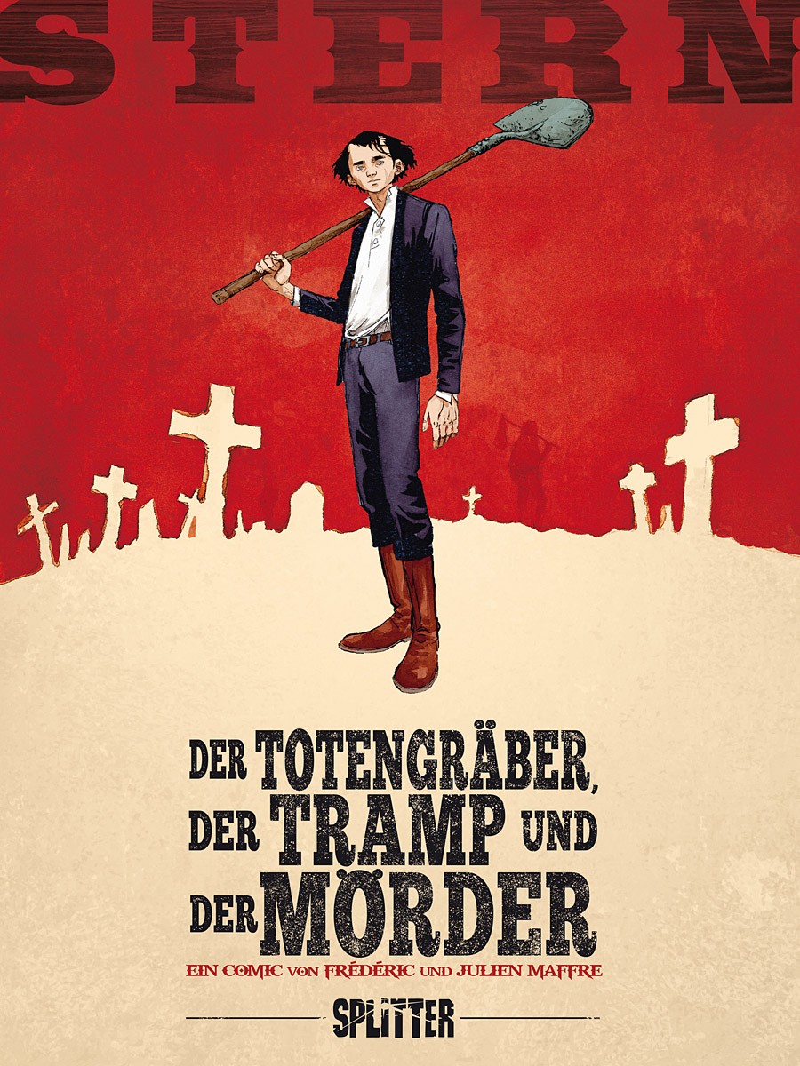 STERN 1 (15,80 Euro) ist eine neue Westernserie, deren erster Band den knackigen Titel „Der Totengräber, der Tramp und der Mörder“ trägt. Im Mittelpunkt steht der Totengräber Stern, der von den Leuten nicht gemocht wird, aber inmitten einer Mordermittlung gerät, die mit seiner eigenen Vergangenheit zu tun hat. Das Western-Setting ist gefällig, aber tatsächlich eher Hintergrund, ist es doch ein Kriminalfall der gelöst wird – inklusive eines skurrilen Feelings, das von jeder einzelnen Seite ausgeht.