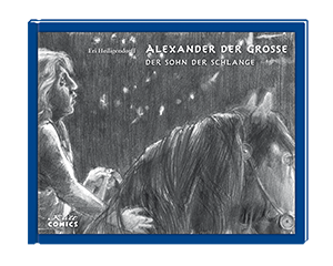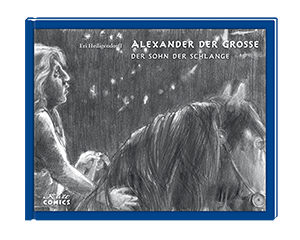 Von der deutschen Künstlerin Eri Heiligendorff kommt ALEXANDER DER GROSSE 1 (19,95 Euro). Sie erzählt in grau schraffierten Schwarzweißbildern von Alexanders Lebensweg, wobei der Text ebenso wichtig ist, wie die Zeichnungen. Es dauert aber ein wenig, bis man sich in diese Präsentation einfindet. Der zweite Teil folgt 2018, danach wird es noch einen abschließenden dritten Teil geben. Kult Comics erweist sich hier als durchaus mutig, diesen schwierigen, aber auch schönen Comic zu publizieren.