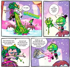 I HATE FAIRYLAND ist knallbuntes, extrem wildes Vergnügen, das mit den typischen Märchen-Elementen arbeitet, ihnen aber einen unflätig-derben Spin verpasst. Weil Gertrude als „Heldin“ eigentlich eine Psychopathin sondergleichen ist. Aber es macht Spaß, ihr bei ihren Wutausbrüchen zuzusehen, während man aber auch all die Details bewundert, die Young hier einbaut: Mond und Sonne als Erzähler, Berge, die schlafen wollen, Kugeln, die reden. I HATE FAIRYLAND birst geradezu vor wundervollen Ideen. Einer der besten Comics seit langer Zeit!