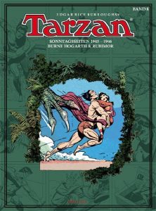 TARZAN – SONNTAGSSEITEN 1945-1946 (29,90 Euro) beinhaltet den Übergang von Burne Hogarth zu seinem Nachfolger Rubimor, der von ERB sogar mehr geschätzt wurde, aber einen weniger ausgefeilten Stil besitzt. Inhaltlich bekommt Tarzan es mit Nazi-Schergen zu tun.