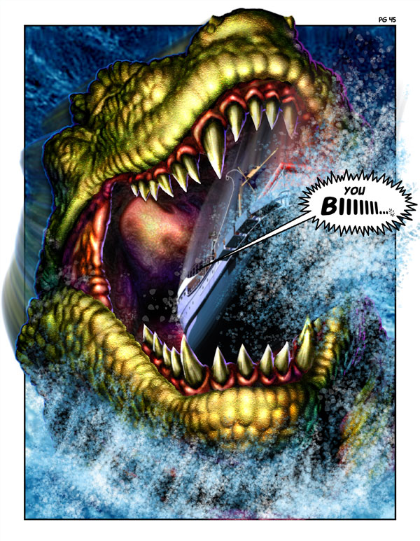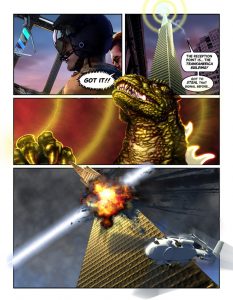 Normalerweise werden solche Drehbücher, die nicht verfilmt wurden, schließlich irgendwann vergessen, aber im Internet gibt es mehr zu sehen. Denn Todd Tennant hat es sich zur Aufgabe gemacht, das 1994er-Drehbuch als Graphic Novel zu illustrieren. Fast 80 Seiten gibt es bisher, weitere werden bei American Kaiju ständig aktualisiert.