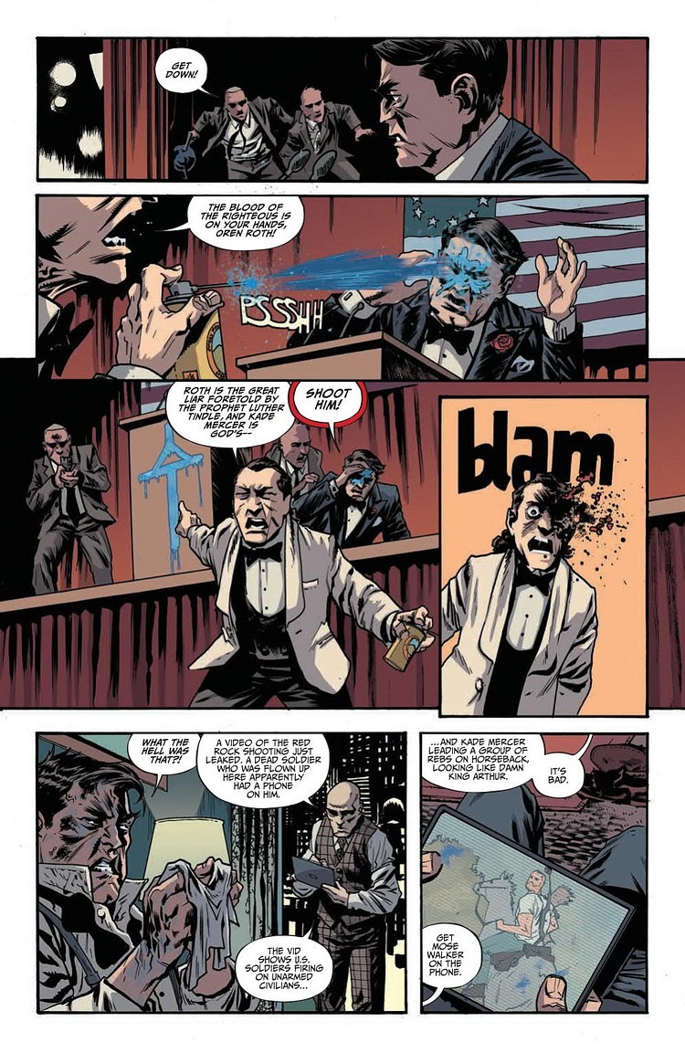 Im Comic hat ein faschistischer Diktator die Macht über die USA angerissen. Einige Staaten lösten sich los, woraufhin der zweite amerikanische Bürgerkrieg folgte. Der Krieg wurde verloren, die USA wurden zu einem totalitären System. Nur Kentucky hat sich wiedersetzt, das nun eine Besatzungszone ist. Ein Pulverfass, das jeden Moment hochgehen kann – und das auch tut, als Kade Mercers Sohn von den US-Soldaten gefangen genommen wird. Er führt darum einen Aufstand an, mit dem er den Präsidenten selbst herausfordert.
