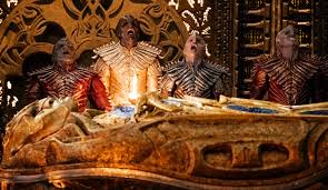 Aber zugleich orientiert sich dieses neue STAR TREK auch am Alten: bei den Bräuchen der Klingonen oder bei der Art, wie Starfleet dargestellt wird. Die Szenen mit den Klingonen, die in ihrer eigenen Sprache sprechen und innerhalb golden-erdigen Interieurs agieren, sind grandios. Sie sind groß, martialisch, mächtig. Diese Klingonen sehen anders aus, als die, die wir kennen, aber man wird nicht das Gefühl los, dass die alten Klingonen keine Chance gegen die neuen hätten.