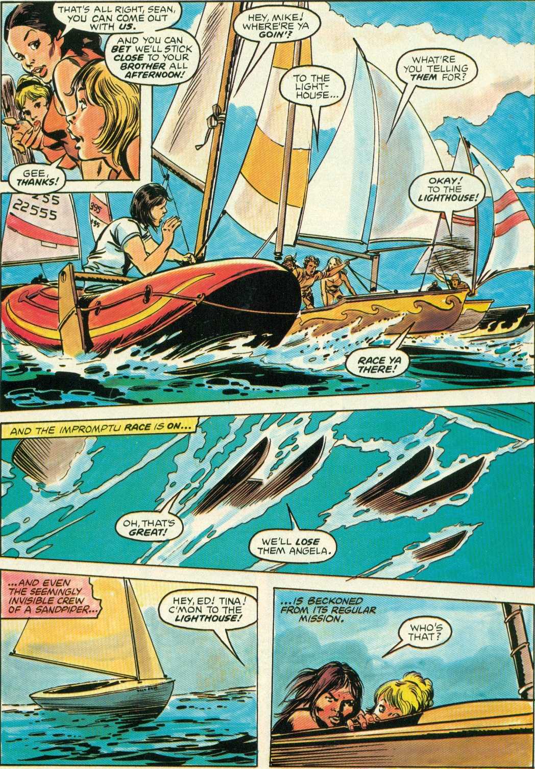 Im Comic finden nicht die Kids den toten Killerwal am Leuchtturm, sondern stoßen auf Brody, der die Leiche des Wals bereits untersucht. Im Comic gibt es eine Szene, in der Brody den Strand und das Meer beobachtet, aber hier passiert nichts. Stattdessen folgt nun eine Szene, in der einige der Jugendlichen Streit haben und einer Sean etwas ins Wasser drückt, ihn als Hai-Köder verspottet, sich über seinen Vater lustig macht und Glück hat, dass er den Jungen wieder rauszieht, bevor der Hai zuschlagen kann. Sean berichtet seinem Vater später davon, was Reeves – Bürgermeister Vaughns Sohn – getan hat.