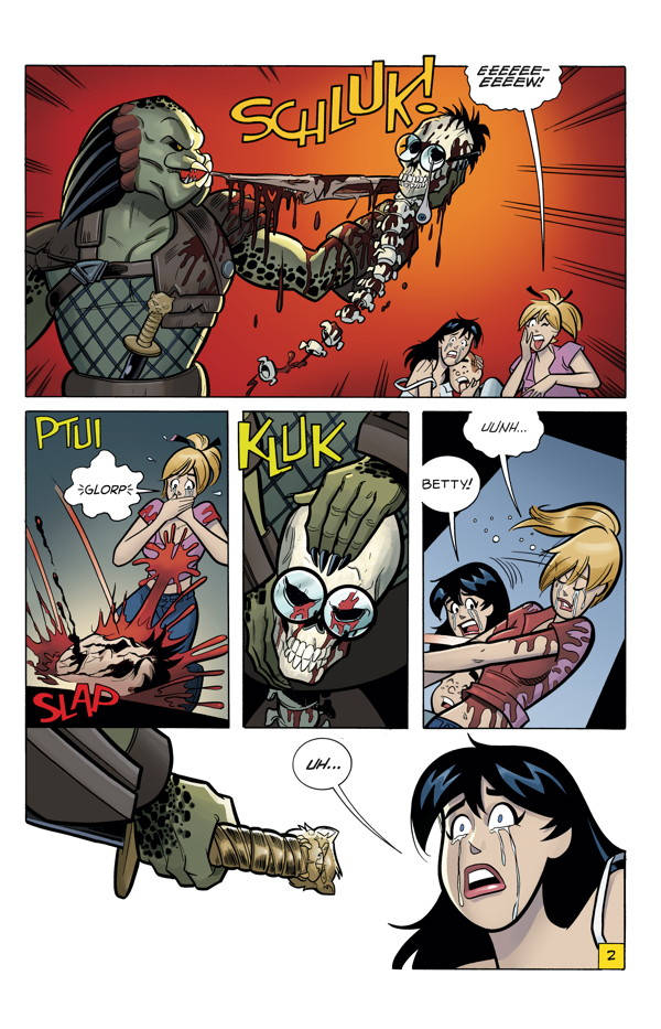 Das erste Heft mutet im Grunde an wie ein x-beliebiger Slasher-Film, nur dass anstelle des Maskenkillers der Predator umgeht – und das alles im typischen Archie-Stil von Fernando Ruiz. Da Archie hierzulande aber keinerlei Bedeutung hat, wird man dieses Crossover vermutlich nicht in lokalisierter Form zu sehen bekommen.