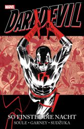 DAREDEVIL: SO FINSTER DIE NACHT (17,99 Euro) ist eine in sich abgeschlossene Geschichte von Charles Soule, in der Matt Murdock bei seinen Vorgesetzten in Ungnade fällt und kaum noch Zeit hat, nachts als Daredevil aktiv zu werden. Darum übernimmt sein Sidekick Blindspot die Aufgabe, stößt aber auf einen Serienkiller, der aus seinen Opfern Kunstwerke macht! Das läuft auf ein Finale zu, das packend und intensiv ist, da sowohl Blindspot als auch Daredevil einen hohen Preis für die Erfassung des Killers bezahlen. Das alles ist in sehr stilisierte Bilder getaucht, die primär Schwarz, Weiß und Rot einsetzen und so ein unwirkliches Gefühl erzeugen. Zugleich sind Ron Garneys Zeichnungen von immenser Schönheit.