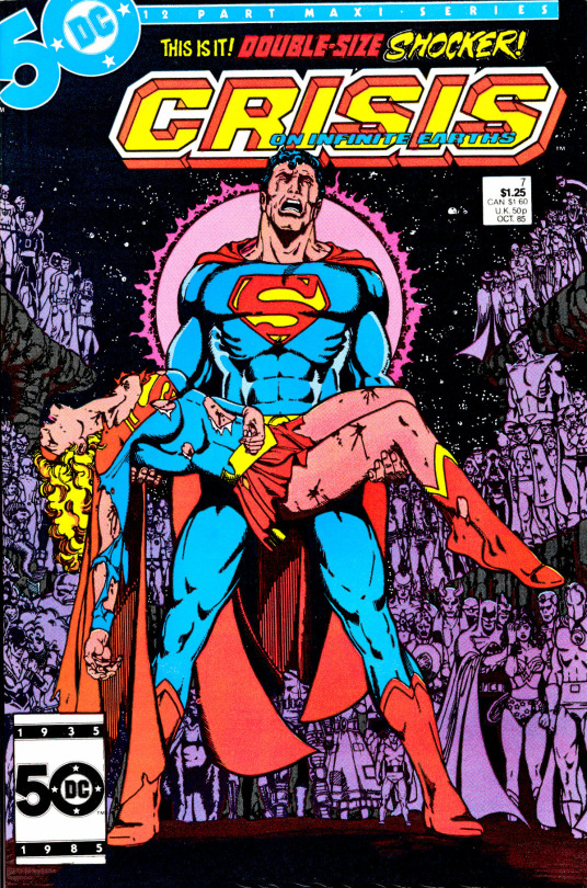 Eines der bekanntesten Cover aller Zeiten ist das von CRISIS ON INFINITE EARTHS 8, als Superman das tote Supergirl in seinen Armen hält.