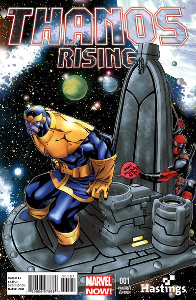 Wenn Deadpool auf einem Cover erscheint, dann wird das Ganze meistens irrer. Aber auch hier gibt es immer noch welche, die etwas kurioser sind als andere, so dieses Variant-Cover für THANOS RISING. So etwas kriegt man im Kino nicht zu sehen …