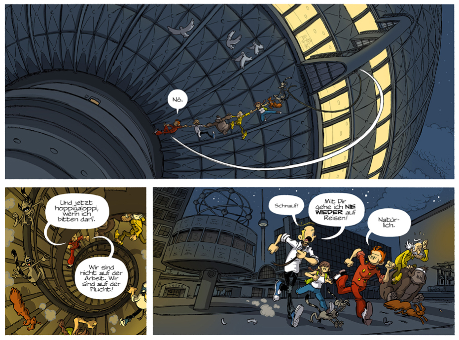 Das exklusivste Geschenk kredenzt der Carlsen Verlag dem belgischen Geburtstagskind aber am 31. Juli: die allererste „Spirou“-Erzählung aus deutscher Hand, „Spirou in Berlin“ vom Berliner Comickünstler Flix („Faust“, „Glückskind“). Zum ersten Mal hat das belgische „Spirou“-Mutterhaus Dupuis einem deutschsprachigen Verlag erlaubt, die traditionelle Comicmarke weiterzuentwickeln und die Comichelden ins eigene Land „einzuladen“.