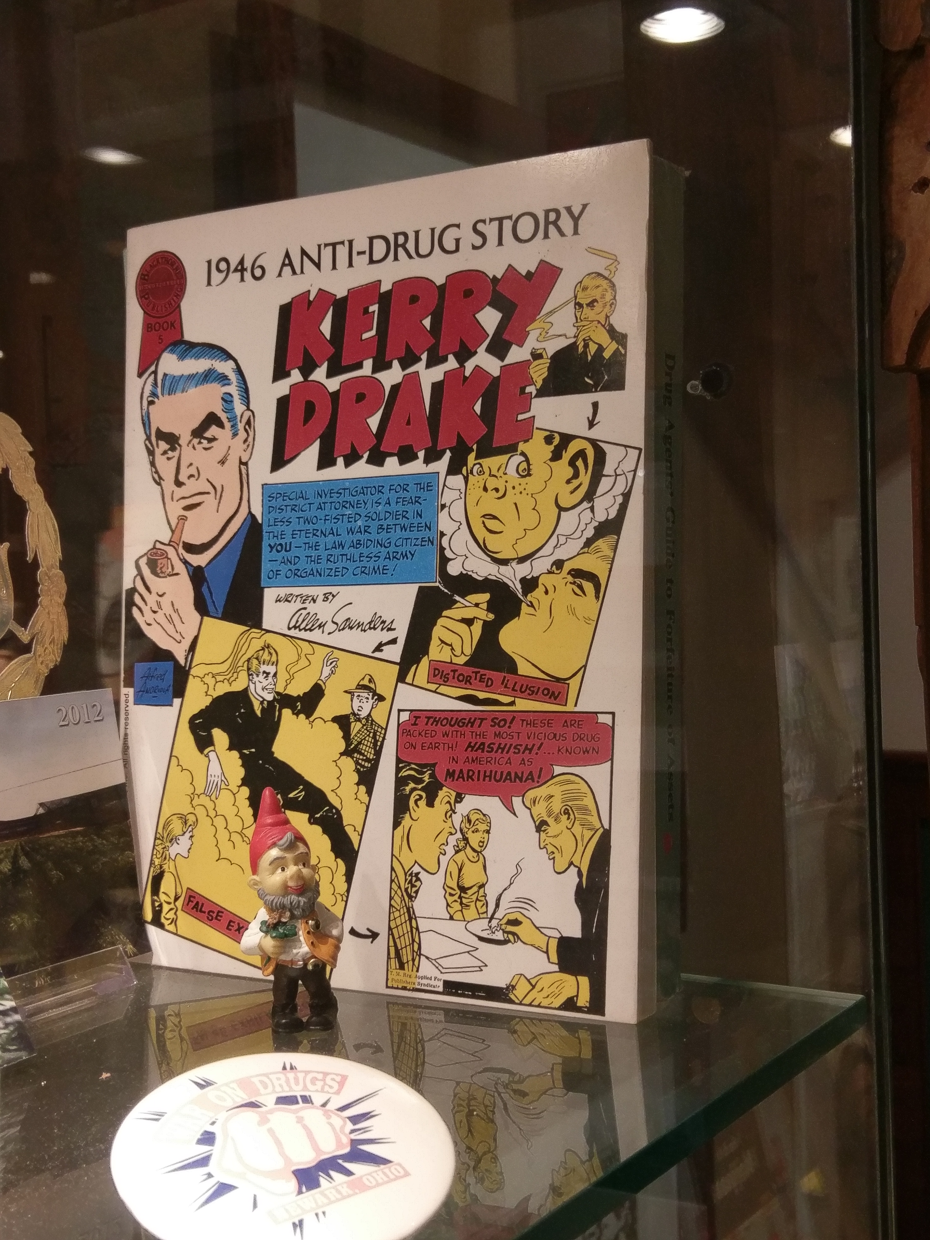 Natürlich dürfen Figuren von Jay und Silent Bob nicht fehlen, ausgestellt sind aber auch reichlich obskure Comics, die sich mit den Gefahren des Drogenkonsums befassen.