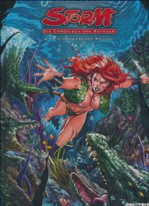 Mit STORM – DIE CHRONIKEN VON ROTHAAR 4 (15,80 Euro) gibt es den Abschluss einer Trilogie, an dessen Ende Storms spätere Gefährtin auf Technologie trifft, die es in ihrer Welt gar nicht mehr gibt. Die Hauptserie hat die Tiefe Welt schon vor Jahrzehnten hinter sich gelassen, um so schöner ist, dass diese Nebenserie sie nun vertieft. Das Bonusmaterial gibt Aufschluss über die Entstehung des Comics und beinhaltet sogar ein Bild von Rothaar als Playboy-Bunny.