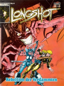 Über diesen Katalog erfuhr ich damals auch, dass es von der Serie LONGSHOT tatsächlich auch noch eine vierte Ausgabe gab. Es handelte sich hier um eine Miniserie um einen mir total unbekannten Marvel-Helden. Aber da es eine Marvel-Serie war, kaufte ich die auch. Sie erschien interessanter Weise nicht bei Condor, sondern bei Bastei, wo man sich ein paar der Marvel-Lizenzen gekrallt hatte. Die ersten drei Hefte hatte ich mir von LONGSHOT auch am Kiosk gekauft, das vierte tauchte aber nie auf. Damals dachte ich, die Serie sei eingestellt worden, aber wahrscheinlicher ist, dass dieses vierte Heft aufgrund des Phasenvertriebs niemals einen Kiosk in meiner unmittelbaren Nähe erreicht hat. Ich vermute, die Serie lief ohnehin nicht so toll, so dass die Höhe der Auflage mit fortschreitender Nummerierung sank. Und von der Nr. 4 waren dann nicht mehr genügend da, damit ich auch ein Heftchen erwischt hätte. Bis heute hab ich keine Ahnung, wie diese Miniserie ausgeht. Ist aber auch nicht gar so tragisch, da ich LONGSHOT nicht so toll fand und sowieso ganz und gar vergessen hab, worum es eigentlich ging.