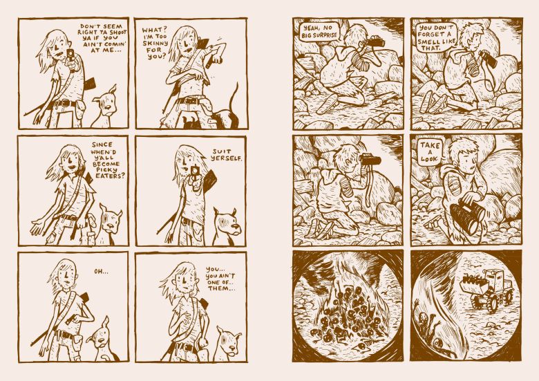 Dies ist eine wilde Endzeit-Coming-of-Age-Geschichte mit zombieähnlichen Monstern, den Ghoulies, die der letzte Überrest der Erwachsenenwelt sind. Denn die Bomben haben vor allem die Erwachsenen vaporisiert – oder zu Ghoulies gemacht. Die Jugendlichen haben allesamt überlebt. Wie bei THE TRIBE, nur schräger.