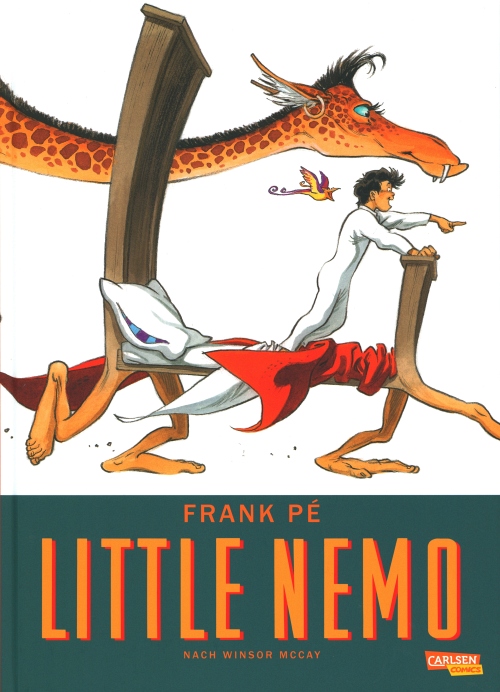 Im Überformat erschienen ist Frank Pés LITTLE NEMO (35 Euro), eine liebevolle, filigrane und detailversessene Hommage an Winsor McCays bahnbrechenden Comic. Der Künstler spielt wie sein Vorbild mit der Form und fordert sie heraus, etwa dann, wenn er eine Figur ein Buch öffnen lässt und man direkt auf die Seite – und auf das, was darunter passiert – blickt. Großartig ist aber auch die Doppelseite mit dem Tiger, der als Ganzes über beide Seiten verteilt, aber mit einem Panel-Raster unterteilt ist, so dass man Nemo und seinem Begleiter bei der Erkundung folgen kann. Pé frönt in diesem Band auch seinem Faible der detailreichen Darstellung von Tieren.