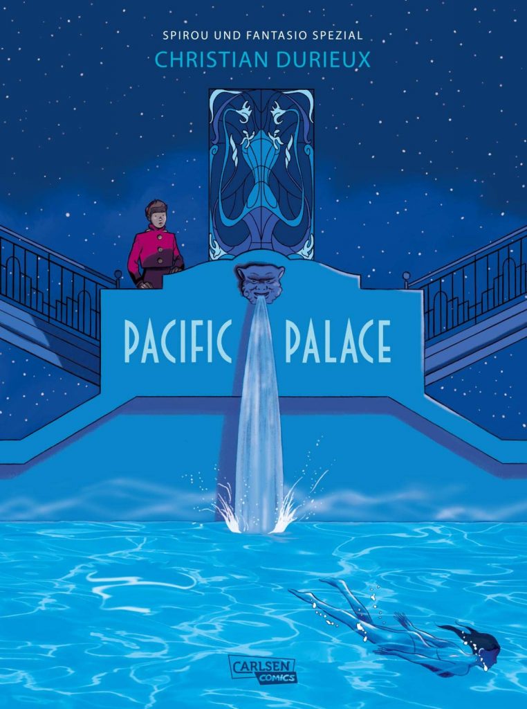 SPIROU + FANTASIO SPEZIAL: PACIFIC PALACE (13 Euro) spielt in einem Luxushotel, in dem Spirou und Fantasio arbeiten, als ein Diktator auf der Flucht eincheckt – und die Intrigen beginnen. Diese Geschichte von Chistian Durieux existiert abseits der Kontinuität und ist deutlich ernsthafter.