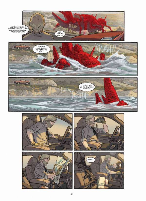 Dass der Mann, Andrew Kennedy, noch dazu aussieht wie Rick Grimes, erhöht nur noch den Eindruck, hier eine Geschichte vor sich zu haben, die sich an THE WALKING DEAD orientiert. Denn die Außerirdischen sind nicht das eigentliche Problem, es sind die Menschen. Eine Erkenntnis, die natürlich nicht besonders neu ist.