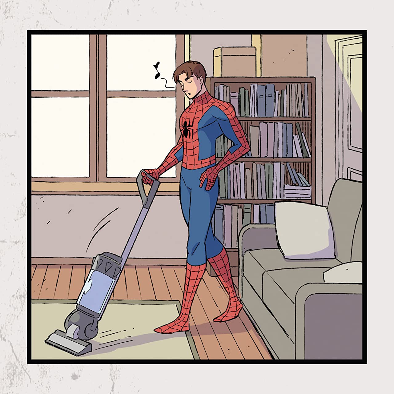 Es sind kleine Kuriositäten, die hier geboten sind, und das nicht nur, weil es merkwürdig ist, Peter Parker im Spider-Man-Kostüm zuhause zu sehen. Gleiches gilt natürlich für Captain America und Thor. Immerhin Captain Marvel ist etwas legerer unterwegs.