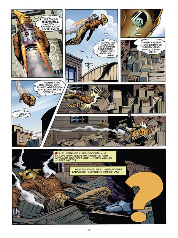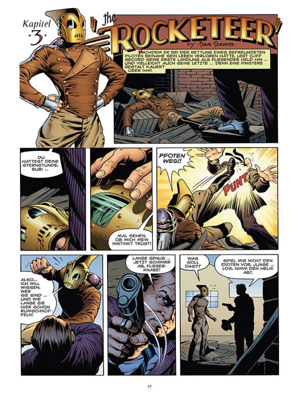 Die erste ROCKETEER-Geschichte erschien in Fortsetzungsform im Comic-Magazin DIE SPRECHBLASE. Es war eine Superhelden-Geschichte – und auch wieder nicht. Und sie spielte nicht im Hier und Jetzt, sondern im Los Angeles des Jahres 1938. Viele der Details blieben mir damals verborgen, aber ich liebte den Sense of Wonder, den dieser Comic ausstrahlte. Ich bewunderte Cliff Secord, einen ganz normalen Burschen, der zum Helden wird. Ich mochte das Art-Deco-Feeling, das dieser Comic ausstrahlt. Und – natürlich – liebte ich Betty.