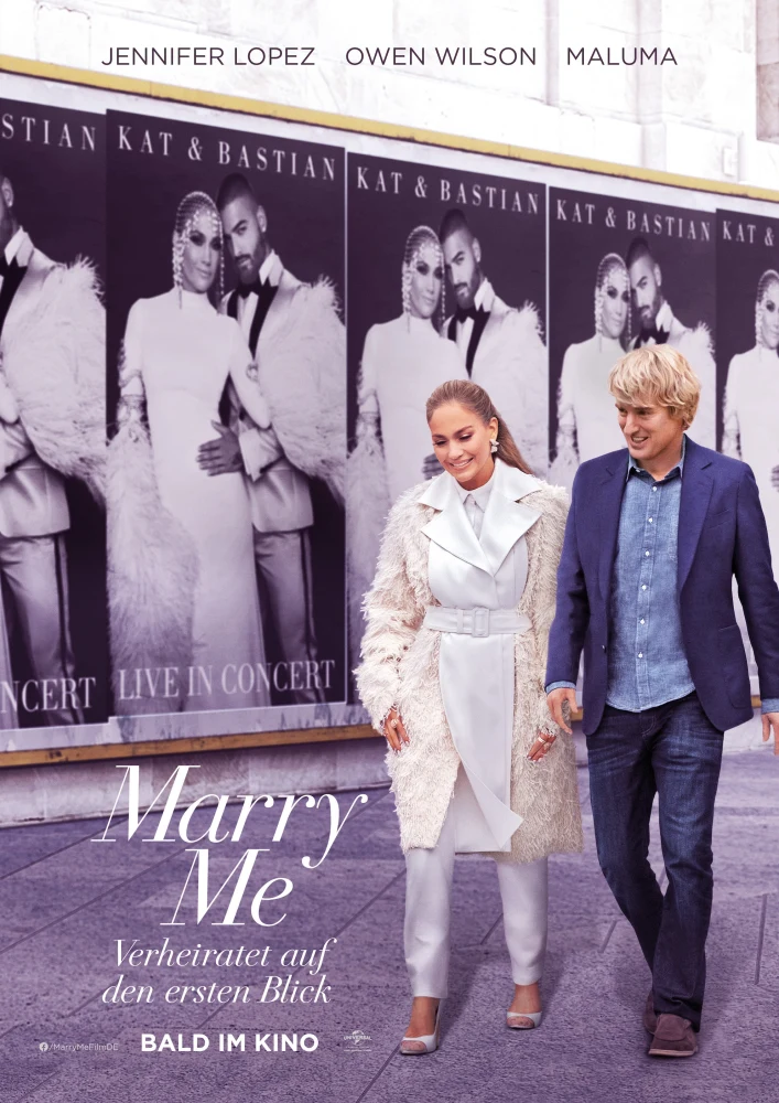 Die Geschichte hält sich dabei nahe an die Vorlage: Popdiva Kat Valdez (Jennifer Lopez) und Newcomer Bastian (Maluma) sind das heißeste VIP-Paar der Welt und haben mit ihrer gemeinsamen Hitsingle „Marry Me” gerade die Spitze der Charts im Sturm erobert. Da ist es nur logisch, dass sie ihre Traumhochzeit möglichst öffentlichkeitswirksam und live vor einem Millionenpublikum feiern. Auch der geschiedene Mathelehrer Charlie Gilbert (Owen Wilson) wird von seiner Tochter Lou (Chloe Coleman) und seiner besten Freundin Parker (Sarah Silverman) zu diesem Megaevent gezerrt. Doch als Kat unmittelbar vor der Trauung erfährt, dass ihr Verlobter sie mit ihrer Assistentin betrogen hat, sieht sie sich gezwungen, eine spontane Entscheidung zu treffen. Als ihr Blick auf den ahnungslosen Charlie in der Menge fällt, entscheidet sie aus einem Impuls heraus, ihn zu heiraten.