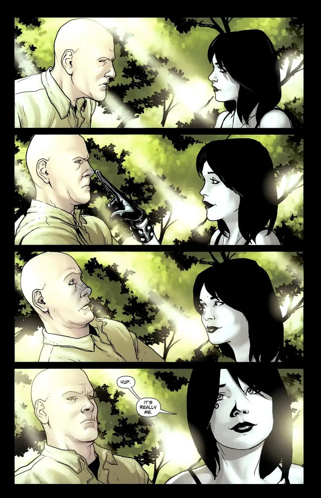 Das Heft ist der fünfte Teil einer größeren Geschichte, steht aber vom Epilog abgesehen für sich, da man einen scheinbar toten Lex Luthor am Anfang vorfindet und dieser von Death aufgesucht wird. Sie unterhalten sich über den Tod, das Nachleben, Gott, Atheismus – die wichtigen Dinge im Leben. Das funktioniert ganz gut, insbesondere als Stand-Alone-Geschichte.