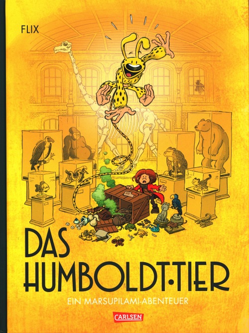 Der deutsche Künstler Flix durfte das Marsupilami in seinem Abenteuer DAS HUMBOLDT-TIER (16 Euro) benutzen. Denn Humboldt war es, der es entdeckte und in die Heimat verschiffte Dort wird es 1931 wieder gefunden, erwacht aus dem Winterschlaf und erlebt im Vor-Nazi-Deutschland ein turbulentes Abenteuer. Ein schöner Comic, der damit eine Lücke im langen Leben des Marsupilamis schließt.