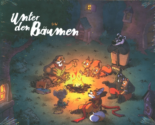 Ein wunderschöner Comic ist UNTER DEN BÄUMEN des Künstlers Dav, der von den Disney-Filmen seiner Jugend inspiriert war – von Winnie Puuh, aber vielleicht auch von DER WIND IN DEN WEIDEN. Er hat vier Geschichten erschaffen, die allesamt im Querformat vorliegen – und das in haptisch unglaublich schöner Form. Vier Bände, die in einem sehr stabilen Schuber stecken, jeder Band als Hardcover.