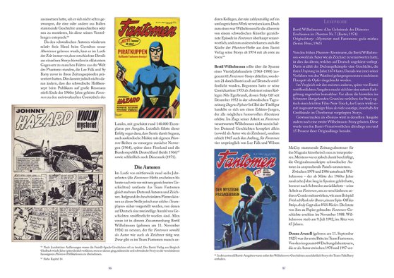 Denn Christian Blees taucht tief in die Materie ein. Das Buch ist dabei in zwei Teile unterteilt. Der erste befasst sich mit den Anfängen, mit Lee Falk, mit den Zeitungsstrips und ihren wichtigsten Schöpfern, aber auch mit den Comic-Heften, die nicht nur in den USA, sondern auch in Italien und Schweden produziert wurden. Außen vor bleibt die australische Produktion, aus der sich neuerdings der Zauberstern-Verlag mit seinen Phantom-Kiosk-Magazinen bedient.