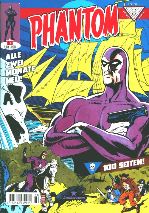 Für Fans des Wandelnden Geistes ist momentan reichlich geboten. Bei Wick erscheinen von Peter Mennigen geschriebene und neu getextete Comics in Schwarzweiß, bei ECR gibt es chronologisch ab 1961die Zeitungsstrips von Sy Barry, und Zauberstern, das auch MIKROS veröffentlicht, hat DAS PHANTOM MAGAZIN im Angebot. Damit hat der Verlag sein Comic-Programm gestartet. Hier werden auf jeweils 100 Seiten neuere und ältere Comics präsentiert, darunter bisweilen auch Zeitungsstrips. Und wer nicht ganz durchblickt im Dschungel der Veröffentlichungen, für den gibt es noch das extrem informative Sachbuch LEE FALKS PHANTOM von Christian Blees.