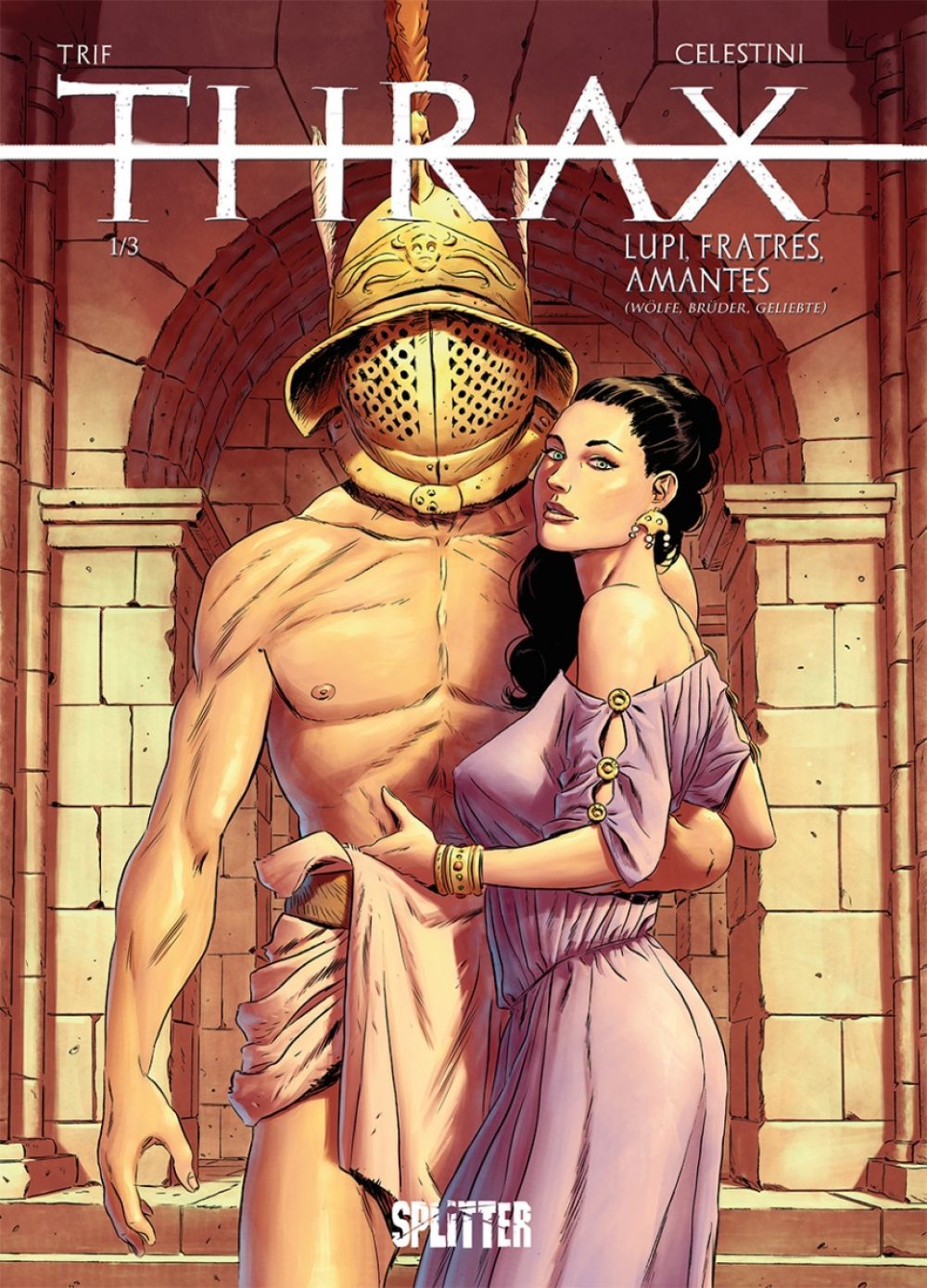 THRAX 1 (19,80 Euro) ist der erste Teil eines Dreiteilers. Im Jahr 79 nach Christus sind Cleio und Adriana verliebt, aber er ist ein Sklave, sie eine Patrizierin, weswegen ihre Wege brutal getrennt werden, bis sie sich wiedersehen – er als Gladiator in der Arena, sie als Zuschauerin. Der Comic ist gut, nutzt aber auch nur die altbekannten Versatzstücke typischer Römer- und Gladiatoren-Geschichten, aufgepeppt mit etwas Erotik.