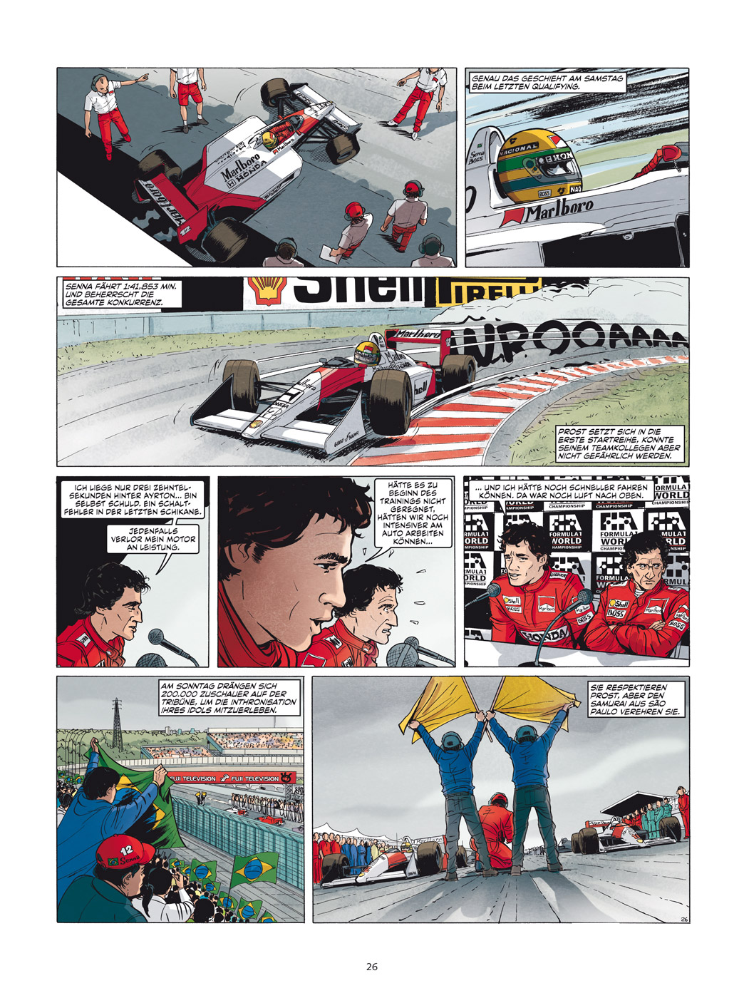 Wer Ayrton Senna als privater Mensch war, kommt hier nicht wirklich zum Tragen. Vielmehr ist der Fokus auf einige seiner wichtigsten Rennen gerichtet. Nur auf den ersten Seiten wird ein wenig erhellt, was Senna angetrieben hat und wie seine frühesten Rennen als Kart-Fahrer ausgesehen haben.