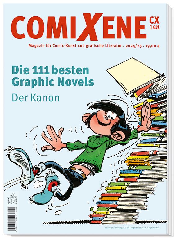 Totgesagte leben länger, und darum gibt es mit COMIXENE 148 auch die fünfte Inkarnation des mittlerweile seit mehr als 50 Jahren publizierten Magazins. Diesmal ist es keine Zeitschrift mehr, die alle paar Monate erscheint, sondern eher schon fast ein Buch mit einem Umfang von 148 Seiten. Die Comixene erscheint künftig einmal jährlich und wird sich jeweils eines Themas annehmen. Im Grunde könnte man sagen: Sie ist eine umfangreichere Ausgabe der REDDITION. Allerdings entsteht sie unter Leitung von Andreas C. Knigge, der damit auch zu seinen Wurzeln zurückkehrt. Herausgeber ist Edition Alfons.