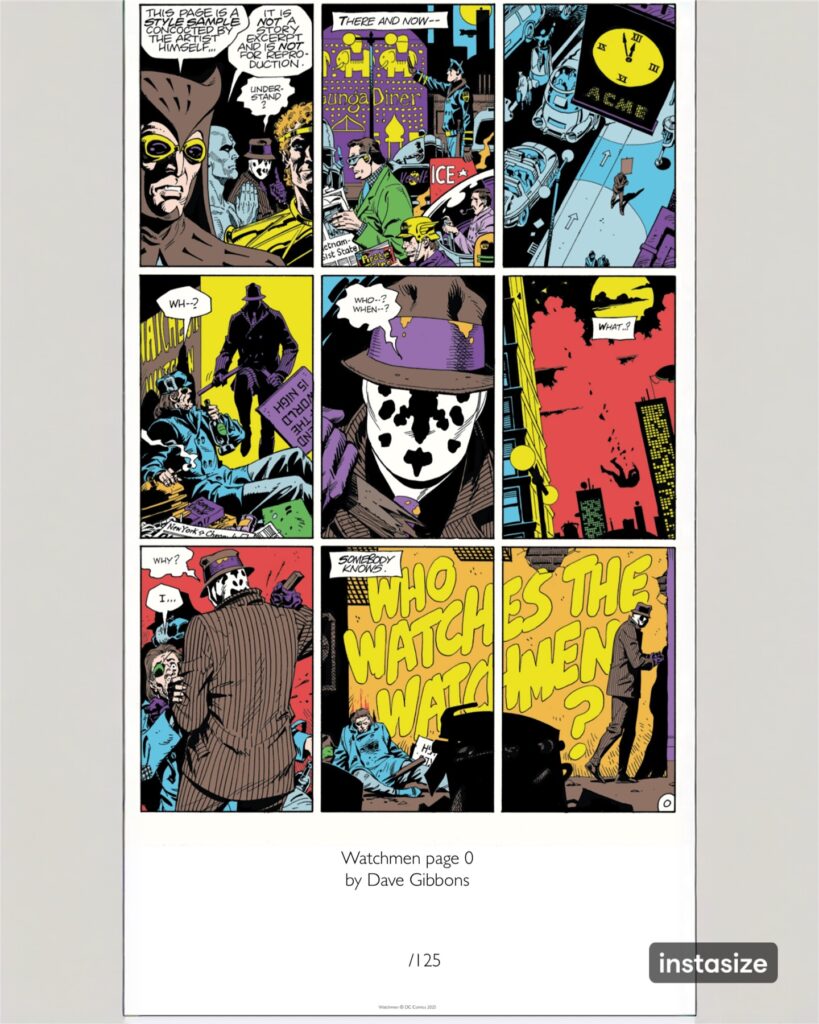 Das Comic Festival in München läuft noch bis einschließlich Sonntag. Ehrengast ist Dave Gibbons, der jeden Tag ein paar Signierstunden hat. Es gibt aber auh einen limitierten Print. Auflage. 125. Format 27,5 x 48 cm. Das Motiv ist die Probeseite die Dave Gibbons seinerzeit angefertigt hat und die als Bonus auch in verschiedenen WATCHMEN-Veröffentlichungen zu sehen war. Der Clou ist jedoch, dass es diese Seite hier erstmals koloriert gibt – von Dave Gibbons.