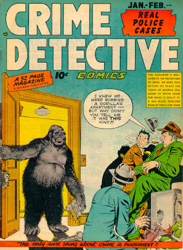Die sechste Ausgabe von CRIME DETECTIVE hat schon ein schräges Cover. Aber wie es später bei DC hieß: Affen und Gorillas auf’m Cover verkaufen mehr Hefte.