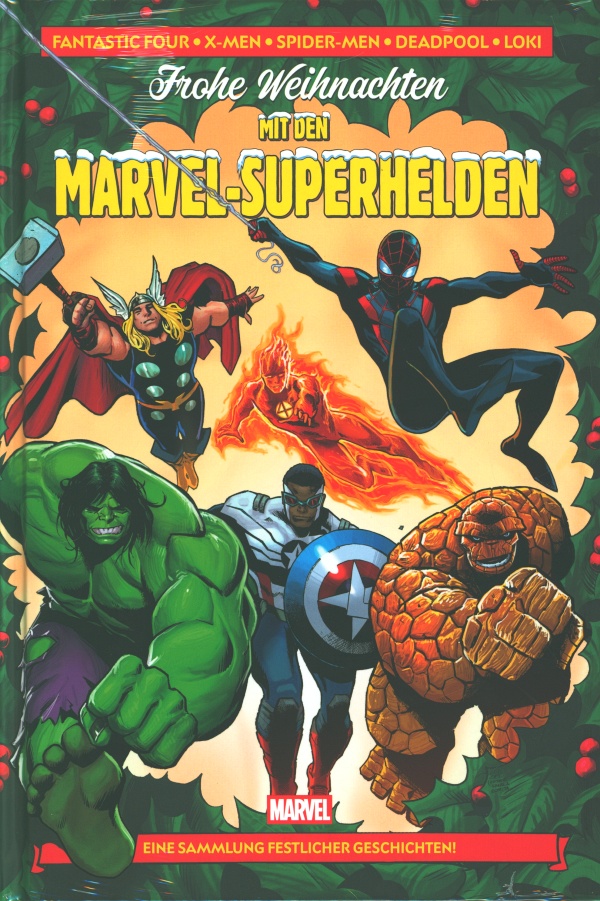 FROHE WEIHNACHTEN MIT DEN MARVEL-SUPERHELDEN (14 Euro) ist ein Hardcover-Band mit Kurzgeschichten, bei denen Dr. Doom die Weihnachtsfeier der Fantastic Four crasht, ein Roboter-Weihnachtsmann aktiv ist, Peter Parker und Miles Morales zusammenarbeiten und Deadpools tierische Freunde zugegen sind. Besonders schön ist die Geschichte um Kitty Pryde, denn sie spielt zu Zeiten einer klassischen Geschichte aus den Achtzigerjahren, als die jüngste der X-Men gegen ein außerirdisches Monster kämpfen musste. Am Ende dieser Geschichte macht Logan ihr dann ein Angebot, wie sie sich künftig besser wehren kann.
