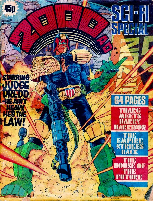 In der zweiten Ausgabe von 2000 A.D. debütierte Judge Dredd. Entwickelt wurde er von Autor John Wagner und Zeichner Carlos Ezquerra. Wagner hatte zu jener Zeit schon einige Geschichten mit harten Cops geschrieben, die sich an den Film Dirty Harry anlehnten. Ihm schwebte nun die ultimative Version dieser Figur vor. Ein Polizist, der zugleich auch Ankläger, Geschworener und Richter ist. Sein Spielplatz: Die Zukunft in der Megalopole Mega-City One. Der Name kam zum Teil von 2000 A.D.-Redakteur Pat Mills. Der hatte an einer Horrorgeschichte namens Judge Dread gearbeitet, die aber für das Magazin als unpassend verworfen wurde.