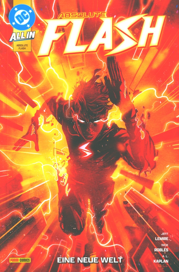 ABSOLUTE FLASH 1 (20 Euro) ist ein weiterer Neustart, geschrieben von dem für seine psychologisch ausgereiften Geschichten bekannten Jeff Lemire. Der junge Wally West hat Probleme: Seine Mutter ist tot und zu seinem Vater Rudy, Colonel bei der Army, hat er keinen guten Draht. Außerdem fehlen dem Armeekind Freunde. In dieser angespannten Lage lernt er den Wissenschaftler Barry Allen kennen, der ihn zur Ablenkung in sein Labor auf der Armeebasis einlädt. Dabei kommt es zu einem Zwischenfall, der Wallys Leben völlig verändert und ihm seltsame Kräfte verleiht. Aus Angst rennt er davon und ist fortan auf der Flucht vor den fiesen Rogues, die ihn zurück zu seinem Vater bringen sollen. Wie bei allen Absolute-Titeln ist das eine interessante Neudefinition der Figur, für die es keinerlei Vorwissen braucht.
