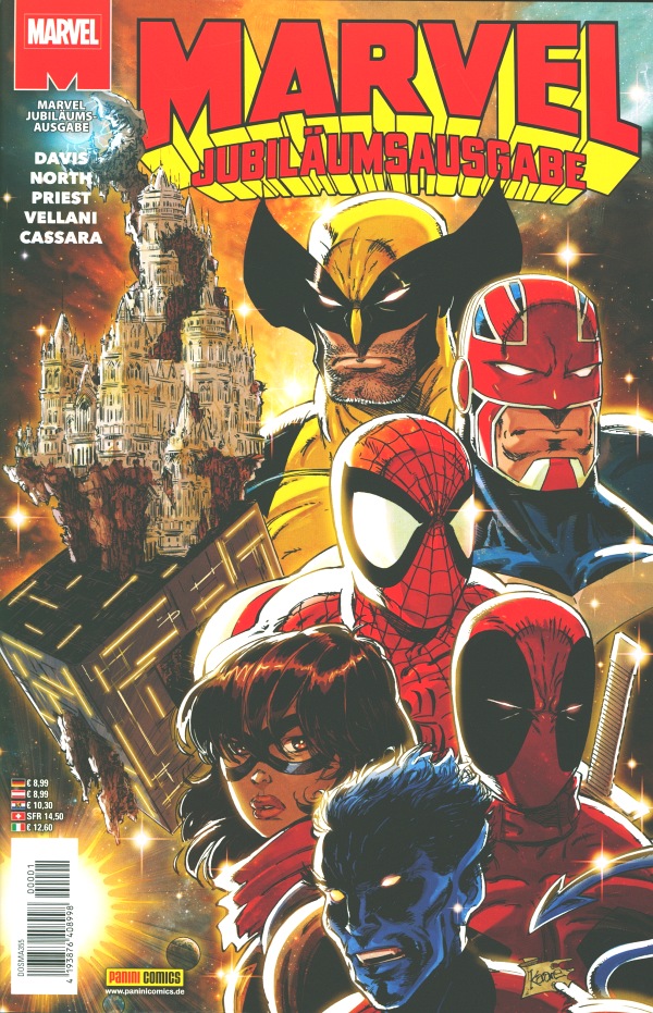 Die MARVEL JUBILÄUMSAUSGABE (8,99 Euro) ist ein Heft zum 85. Jubiläum des Verlags, das auch 50.000 Marvel-Hefte feiert: Im 85. Jahrhundert werden Wolverine und Deadpool in einem Museum durch die Marvel-Legenden geführt: Ms. Marvel wird zur Heroldin von Galactus. Spidey holt das Spider-Mobil aus der Garage. Die Helden von Excalibur sehen vielen Gefahren ins Auge. Und die Klone von Hulk, Venom und Co. lassen es in einer Arena krachen.