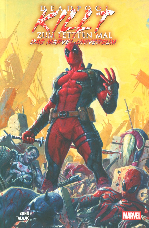 DEADPOOL KILLT ZUM LETZTEN MAL DAS MARVEL-UNIVERSUM (16 Euro) beginnt nach dem letzten Amoklauf des Söldners. Allein auf weiter Flur, gebrochen und ohne Ziel vor Augen sinniert er vor sich hin, bis ihn eine Weltenwanderin zu einer Mission überredet. Das Schicksal des gesamten Multiversums steht auf dem Spiel und Wade soll es retten. Die Jagdsaison ist eröffnet. Und die dunkelsten, verrücktesten Versionen von Marvels Helden sind das Wild! Aller guten Dinge sind drei. Viel schwarzer Humor, reichlich überbordende Gewalt, und dabei eine Geschichte, die variiert, was man kennt, aber doch neue Ideen aufweist. Doch, der Comic macht Laune!