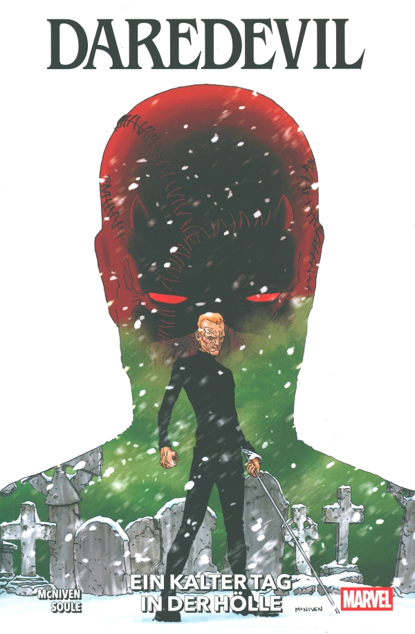 DAREDEVIL: EIN KALTER TAG IN DER HÖLLE (14 Euro) spielt in der Zukunft und zeigt Matt Murdock ohne Kräfte, aber er ist immer noch ein Mann ohne Furcht! Er tut alles, was er kann, um den Bedürftigen einer trostlos gewordenen Stadt zu helfen. Bis es zur Katastrophe kommt, in der nur noch die Hoffnung auf ein Wunder bleibt. Charles Soule und Steve McNiven präsentieren eine krasse Zukunftsvision um den alt und grau gewordenen Matt Murdock in einer sterbenden Welt, die Helden dringender braucht denn je! Eine bittere Geschichte über das Ende eines Helden. Den Punisher gibt es hier auch, und man muss schon sagen: Er macht dem schwarzen Ritter aus DIE RITTER DER KOKOSNUSS alle Ehre!