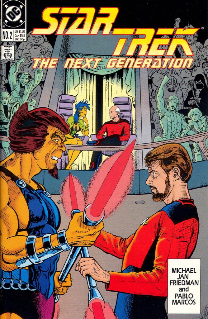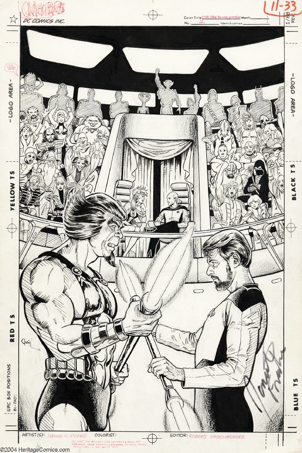 Jerome K. Moore hat sehr viele Cover für STAR TREK: THE NEXT GENERATION aus dem Hause DC gezeichnet. Bemerkenswert ist dieses hier, weil die Ränder beschnitten sind.