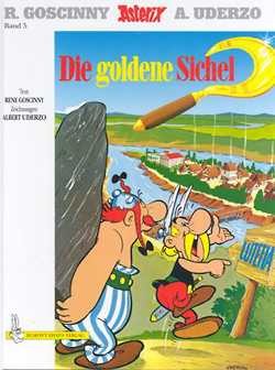 "Die goldene Sichel" von Albert Uderzo und René Goscinny. 48 Seiten, Hardcover.Im Jahre 50 v. Chr. ist ganz Gallien von den Römern besetzt...Nicht ganz. Dank eines Zaubertranks, der übermenschliche Kräfte verleiht, leistet ein kleines gallisches Dorf den Römern sturen Widerstand.Allen voran ein kleiner Krieger mit imposantem Flügelhelm, sein wohlbeleibter, aber keineswegs dicker Kumpan und ein possierlicher kleiner Hund. Das einzige, wovor sich diese unbeugsamen Helden fürchten, ist dass ihnen der Himmel auf den Kopf fallen könnte.