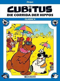 "Die Corrida der Hippos" von Dupa. Album, 48 Seiten.Herr Bojenberg und Cubitus fahren in Urlaub. Doch irgendwo auf dem Lande gibt ihr Auto den Geist auf und sie müssen zu Fuß weitergehen. So kommen die beiden zu einer verfallenen Ruine, in der sie sich für die Nacht häuslich einrichten. Am nächsten Tag erkundigen sie die Gegend und entdecken ein hermetisch abgeriegeltes Gelände, auf dem sich ein Wissenschaftler und andere Personen tummeln, die sich äußerst merkwürdig verhalten. Und als Cubitus einen bunten Helm findet und diesen aufsetzt, ist er auch nicht mehr der alte...