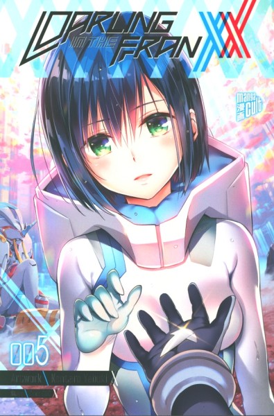 In einer weit entfernten Zukunft hat sich die Erde in ein trostloses Ödland verwandelt. Die letzten Überlebenden haben Zuflucht in mobilen Festungen gefunden und setzen nun all ihre Hoffnungen in die FRANXX – überdimensionale Roboter, die die bösartigen Klaxosauren bekämpfen. Unter den Pilotanwärtern jener FRANXX befand sich einst der junge Hiro, der dank seiner Fähigkeiten als „Wunderkind“ gepriesen wurde – und schließlich am Eignungstest kläglich scheiterte. Doch als er zufällig der mysteriösen Elite-Pilotin Zero Two begegnet, nimmt sein Leben eine schicksalhafte Wende … (© Manga Cult)